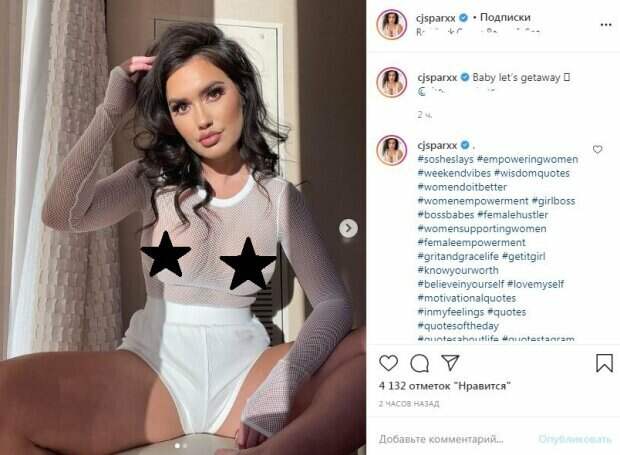 Здесь модель тоже не удержалась от откровенных снимков. Сьенега позировала в тесном топике без белья, который обтянул ее большие формы. Самой сокровенно пробивалось сквозь ткань, на что и надеялась соблазнительница. Также звезда надела лосины, которые обтянули ее упругую пятую точку. Завершила образ шапка, которая походила на детскую. Звезда сидела на коленях, немного выгнувшись, чтобы ее формы выглядели эффектнее. "Сегодняшняя экскурсия была невероятной! Исторические факты, бездорожье и настоящие следы динозавров! Спасибо", - написала знаменитость. За семь часов пост собрал более 4000 лайков и много комментариев. Пользователи сети написали много приятного в сторону жаркой соблазнительницы. "Хороша", - написал один из поклонников. Ранее мы писали, что Кассандра Сьенега натянула на обнаженное тело прозрачную сеточку, из которой показался большой бюст и самые интимные детали. Грудь выглядела очень притягивающе и соблазнительно. Тонкую талию красотка подчеркнула белыми шортиками на высокой посадке. Модель раскинула ножки, показав их рельефность и накаченность. Напомним, Кассандра Сьенега позировала на лежаке. Звезда выбрала яркий оранжевый купальник с очень высокой посадкой на бедрах, придающей пикантности образу модели. Напомним, Кассандра Сьенега из "Playboy" блеснула нереальным соблазном, сбросив нижнее белье: "Жара в постели". Как сообщала Politeka, Кассандра Сьенега из "Playboy" померилась бесстыдством с подружками в купальниках: горячее фото. Также Politeka писала, что Кассандра Сьенега из "Playboy" блеснула своим "жаром" в прозрачной сеточке: "Моя принцесса".