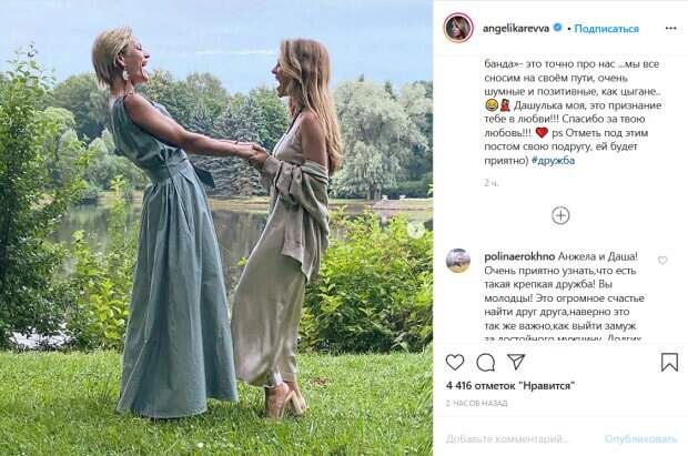 Жена известного российского артиста Александра Реввы восхитила нежным образом в компании своей подруги Анжелика Ревва поделилась рассказом о близком для нее человеке в своем Инстаграм. Об этом пишет Politeka.net. Так, жена Артура Пирожкова (сценический псевдоним Реввы) призналась, что в ее жизни помимо мужа и детей есть еще один очень близкий человек – подруга.