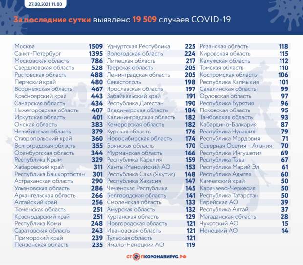 рф Вылечились от COVID-19 за последние сутки 19 217 пациентов. Обще число выздоровевших от коронавируса достигло 6 112 035 человек. Фото: стопкоронавирус.рф Самые свежие и актуальные новости о пандемии коронавируса в Татарстане, России и мире на утро 27 августа читайте в подборке «Реального времени».