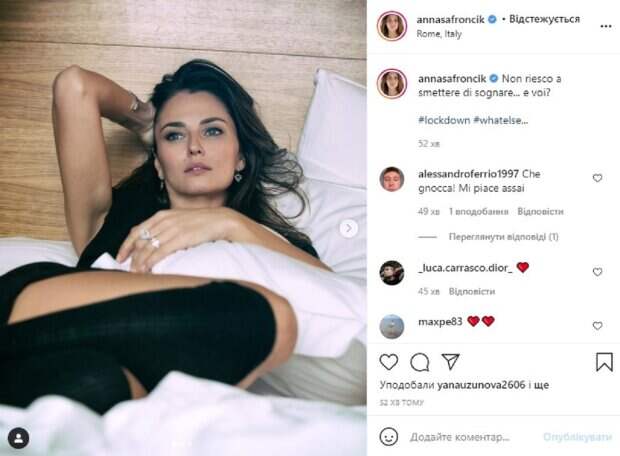 Анна разместила фото с акцентом на своих выразительных глазках, которые так и манят глубиной и невероятно красывые. "Я не могу перестать мечтать ... а ты?", - подписала свои снимки девушка. Поклонники не смогли пройти мимо очаровательной красотки, и оставили в колонке комментариев множество комплиментов и приятных слов. Свою фаворитку фаны назвали самой очаровательно, возвеличили на уровень королев и божества: "Какая красотка! мне это очень нравится", "Ты наша Богиня!", "Я тоже! Спасибо!", "Супер