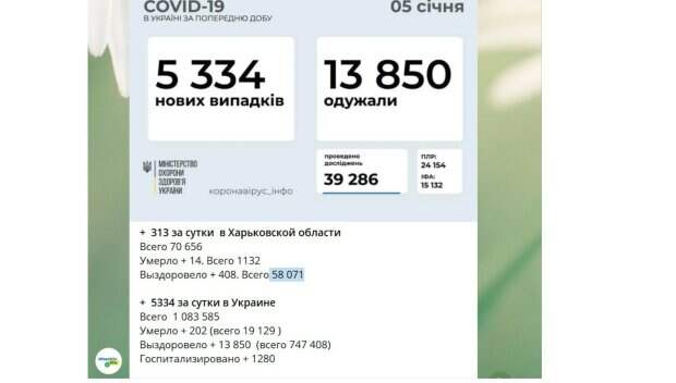 В Харьковской области увеличилась смертность от китайского вируса Как передает телеграм-канал "Харьков лайф", в области по состоянию на 9 утра 5 января 313 человека за сутки заразились вирусом. Всего с начала пандемии заболело 70 656 харьковчанина, умерли 14 (всего 1132), выздоровели + 408(всего 58 071) Ранее мы писали, что коронавирусная инфекция будет с человечеством постоянно Кроме того, существует высокая вероятность, что COVID-19 превратится в эндемическую инфекцию (то есть характерную для определенной местности), поэтому миру придется научиться жить с коронавирусом.
