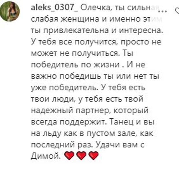 Во время одной из тренировок Ольга также получила травму – повредила связки на ноге, после чего она пропустила выход на лед и восстанавливалась у врача. Сейчас Ольга уже может изучать сложные элементы поддержи и танцевать с новыми силами. Однако, как заявила недавно Бузова в разделе Стори, проблемы на этом не закончились. Все дело в том, что Ольга не готова к выступлению так, как должна была. При этом звезда даже потеряла голос. «Из-за нервов очень много происходит. Первое — это голос пропадает, второе — нет уверенности вообще в ногах. Ничего не могу с собой поделать. Будьте со мной рядом, я должна чувствовать вашу поддержку», - сказала в ролике звезда. Пользователи сети тут же ответили: «Выше нос, Королева, и только вперед!!!