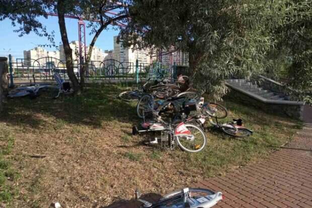 В Киеве в одном из парков вандалы сбросили с 15-метровой высоты велосипеды, суммарная стоимость которых составляет около 25 тысяч гривен Об этом сообщает Politeka со ссылкой на сообщение учредителя общественного велопроката Bikenow Алексея Кушки. Он рассказал, что в парке "Молодежном" на Троещине вандалы ночью сбросили с парковки городского велопроката, которая обустроена выше забора, 15 велосипедов вниз на траву.