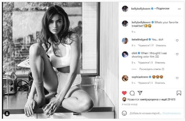 В этот раз звезда превзошла саму себя. Келли забралась на кухонный стол, надев светлое белье. Девушка расставила ножки, а в руке держала стакан. "Какой твой любимый завтрак?", - написала звезда под фото. Фанаты поставили почти 30 тысяч лайков и написали комментарии: "Ты, ну...", "Я очень люблю тебя", "Ты буквально самый соблазнительный человек на свете. Lol. А твой жених - дерьмо. Я люблю вас, ребята. Любимый завтрак = простая овсянка с кленовой куриной колбасой или черничные вафли с протеином каши. И всегда с чашечкой эспрессо", "Какая чертовски красивая". Мы писали, что популярная западная модель Келли Гейл впечатлила необычной презентацией одежды. На свежих фото она решила покрасоваться в новых джинсах. Правда, кроме штанов на девушке был только черный кружевной лифчик. Другую одежду модель решила не надевать. Напомним, Келли Гейл из Victoria’s Secret втиснула упругих "подружек" в узкий купальник Также Politeka сообщала, что Келли Гейл из Victoria’s Secret неприлично широко расставила ножки в крохотном бикини А еще Politeka писала, что разгоряченная Кэлли Гейл из Victoria’s Secret в сауне полностью разделась, лишив мужчин сна