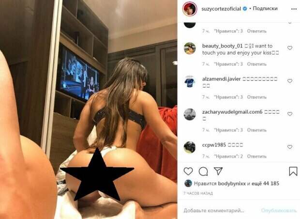 Известная модель Сьюзи Кортес, которая получила титул за самые красивые ягодицы, показала себя в жарком образе На фото Сьюзи показала себя в трусиках на завязках и бюстгальтере. Образ Кортес дополнила блестящим боди, а сама стояла в профиль к камере. Волосы были распущенными, красотка стояла на фоне панорамного окна.